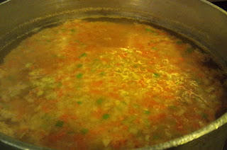 | なるべく崩さないように、ゆっくりとね。 最後の最後に、挽肉卵白、絞っちゃだめ。 (→これまた濁る原因だ) 深追いはしないで、レードルですくい取れるところまで。 |